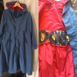 裏地のナイロン地には、藍染め絞りとラトビア柄の転写ブリント
