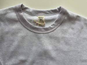 ハイゲージで編み立てたハニカム組織のサーマル生地素材の裾ヒモ仕様の長袖Tee