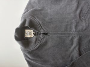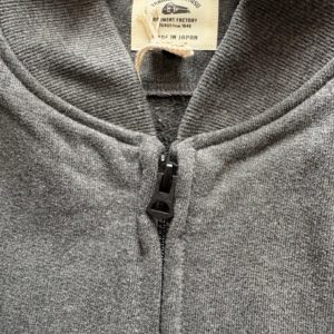 地厚な裏毛生地を顔料プリントで彩色して洗い加工でフェード感を出したグラウンドジャケット。染料を使っていないので、環境に優しく製造工程も減るサスティナブルなシリーズ。Wジップのブルゾンタイプのジャケットです。