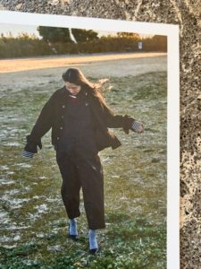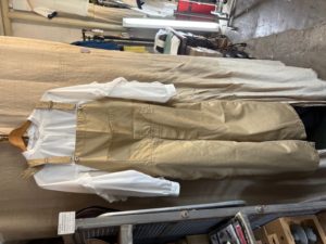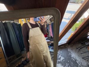 オーバーオールと同素材のタックチノパンツ