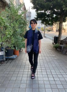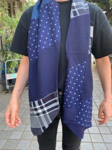インディゴそれぞれの生地をパッチワーク funsetらしいアイテムですね