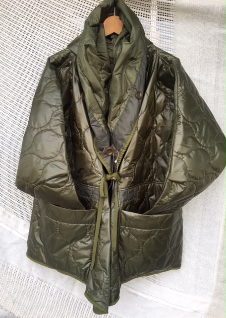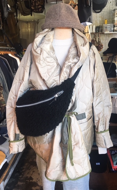 オーバ―コートのようなゆったりとしたシルエットと大きいフード