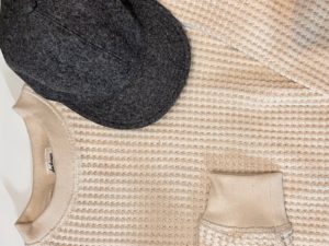 短く毛羽だった生地のフランネル素材を使用したゆったりシルエットのワイドベレー