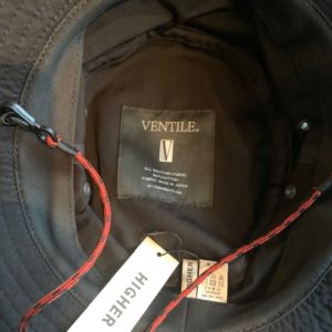 適度な角度を付けたワイドブリム、細めのブランチループ。サイドのベンチレーション用ハトメ、取り外し可能なバイカラーのドローコード。