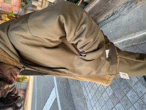 裏地とヒモをコーヒーに染料を混ぜたコーヒー染めに仕上げています。