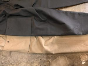 ゴム仕様、タック入りのテーパードパンツ ポケットも大きく使いやすいのもいい!特に後ろのポケット!