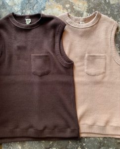 もちろんシャツの上にもOKだし、コットン100なので 真夏以外は活躍しちゃうベストなのです。久々の登場は、新色で2色。