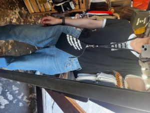 裏側にはKAPITALデニムの革ラベルに使用されているロゴをプリント