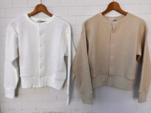 定番のスナップカーディガンをワッフル素材にした通年アイテムですね