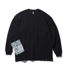 裾のピスネームと襟裏のマウンテンキューブプリントのみ無地のロンT