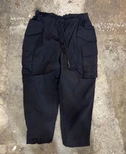 Tapersd easy pantsのシルエットで、大きめのマチ付きカーゴポケットを配したカーゴパンツ。素材は、表100%リップストップナイロン、