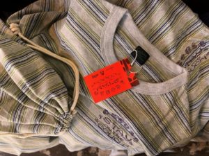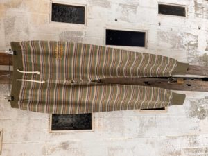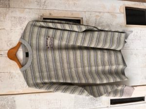 素材は、GOHEMPのジャガードボーダー生地で製作